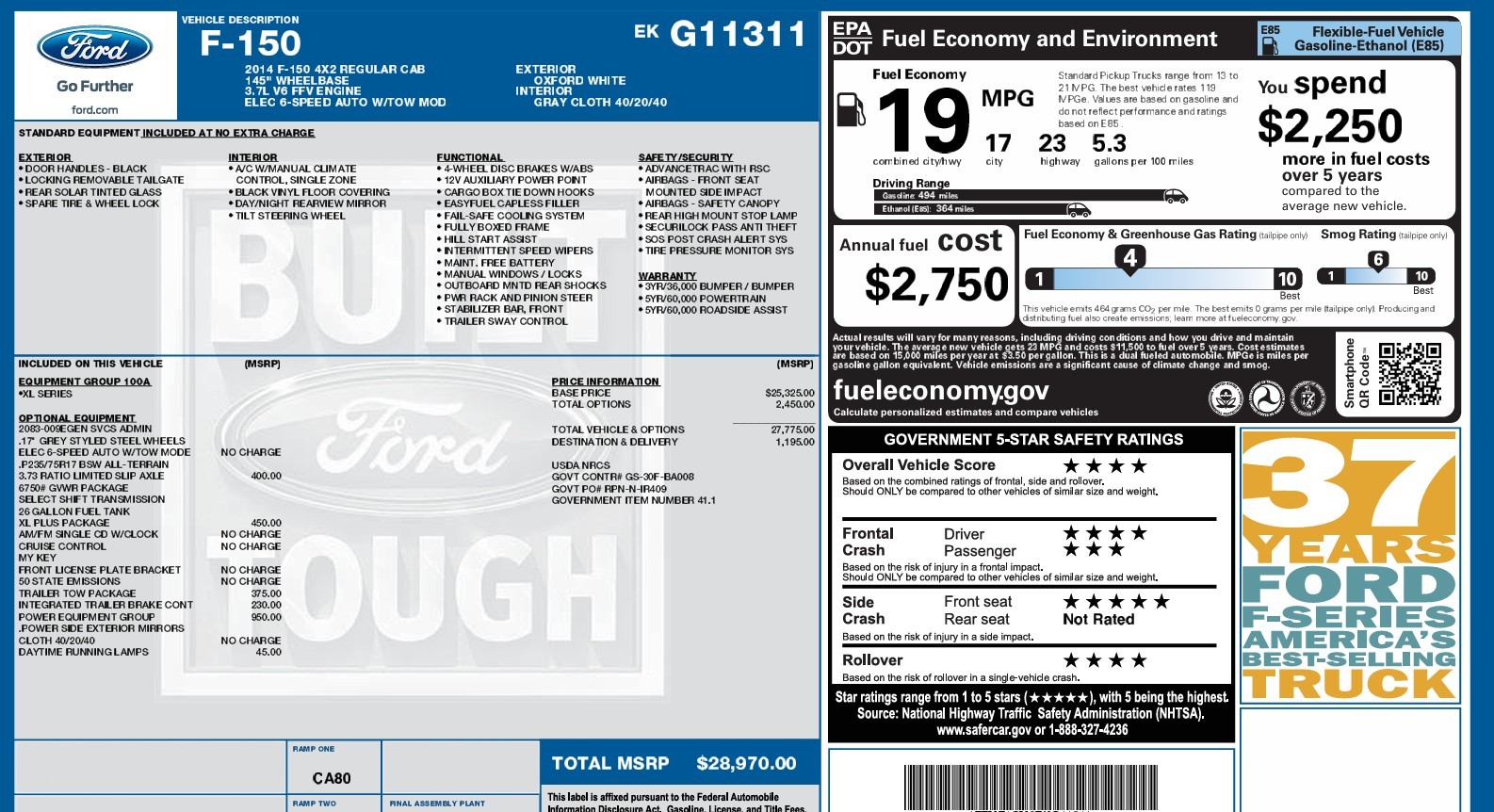 Your message: Hello, my name is and I'm writing you today to learn more about the 2014 Ford F-150 XL 8-ft Bed listed for $16,995.00. I live in the area and I would like to hear back from you soon and learn more about this vehicle. Please call me at at your earliest convenience.
